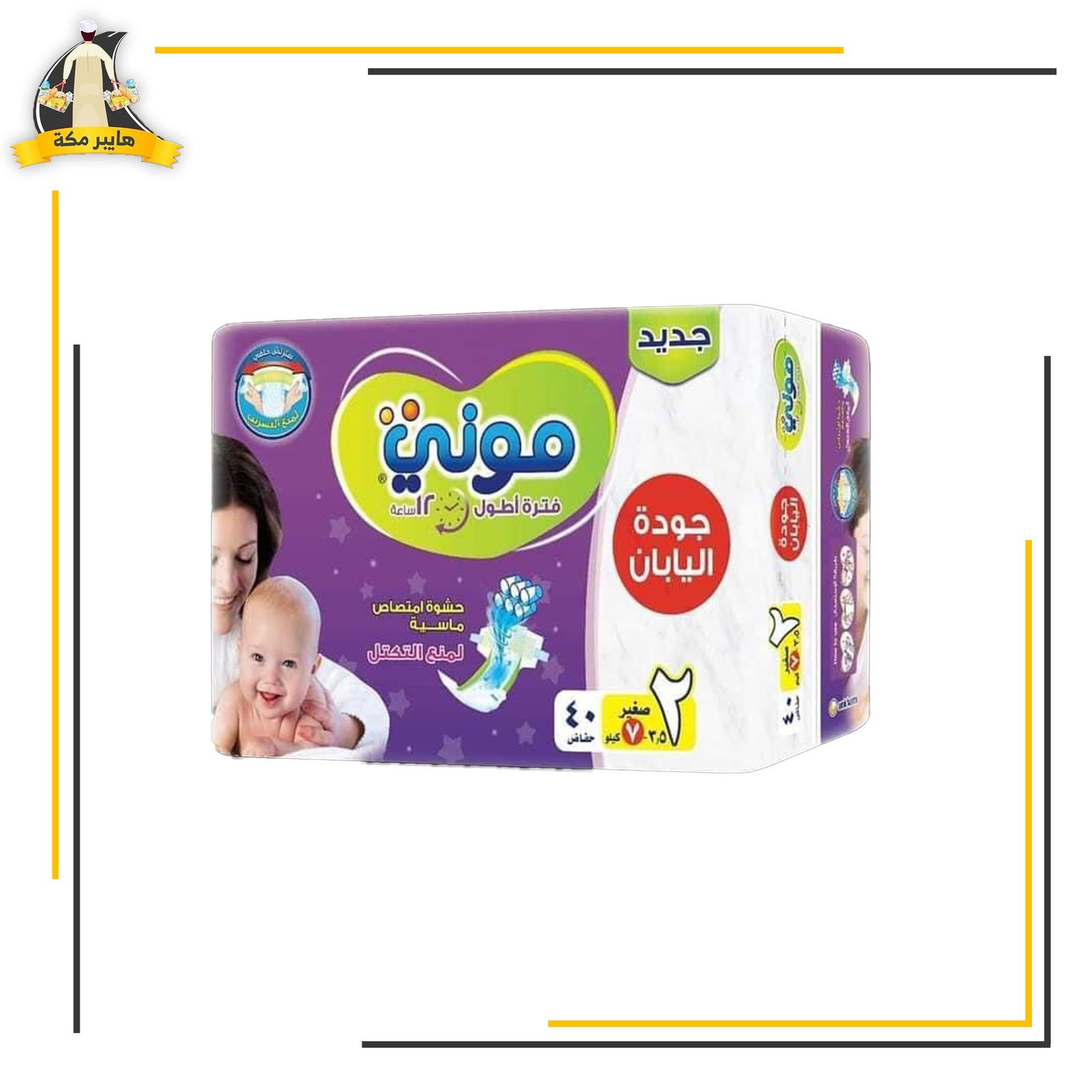 موني مقاس 2 عدد 40حفاضة